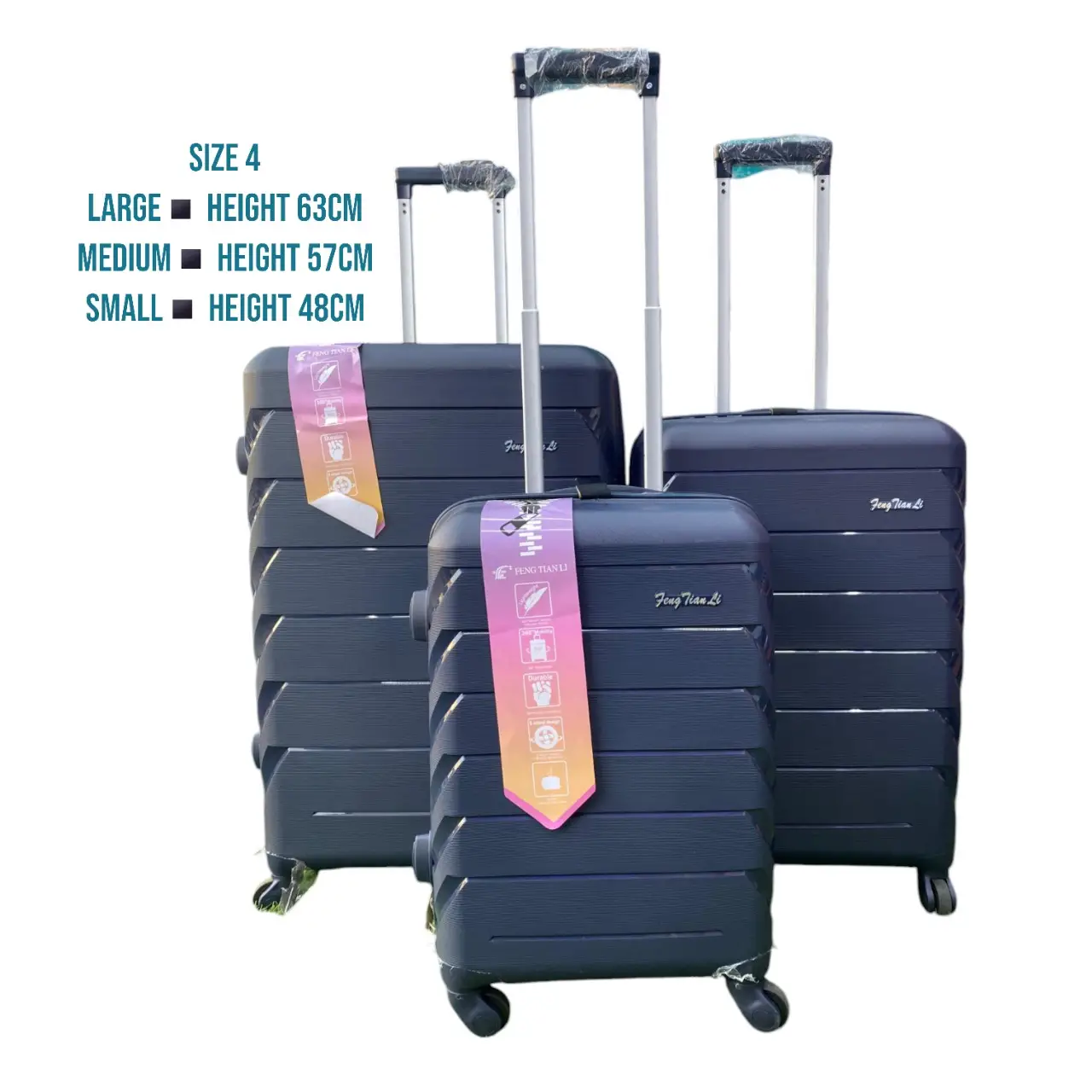 - Three Versatile Sizes – Large (63cm) for long trips, Medium (57cm) for short getaways, Small (48cm) as a carry-on.